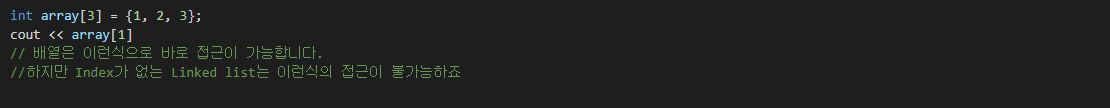 - Linked list는 항상 순차적으로 element에 접근해야합니다.