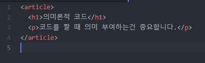 의미론적 태그들은 웹 브라우저나 개발자들에게 명확하게 의미를 묘사하는걸 뜻합니다. <header>, <footer>, <article> 같은 요소들은 의미론적인 태그들로 여겨지게 됩니다. 왜냐하면 이 태그들 안에 있는 컨텐츠들을 정확하게 묘사하는 것 자체가 목적이기 때문이죠. 사실 Semantic tag가 없어도 코드가 돌아가기는 합니다. 하지만 브라우저나 개발자가 그 코드를 읽고 해석할 때 Semantic tag가 있냐 없냐에 따라서 그 코드의 의미가 다르게 다가 올 수도 있죠. 그래서 코드를 짤 때 정확하게 의미를 부여하는게 중요합니다.